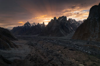 วันนี้เดินไปบน Baltoro glacier เหมือนเคย เส้นทางซับซ้อน จากการเปลี่ยนแปลงของธารน้ำแข็ง วิวจะอลังการมากขึ้น เห็นวิว Trango tower, Cathedral peak, Lobsang spire ได้ชัดเจนขึ้น แคมป์วันนี้ตั้งอยู่บนเนินเขา วิวสวยงามรอบตัว